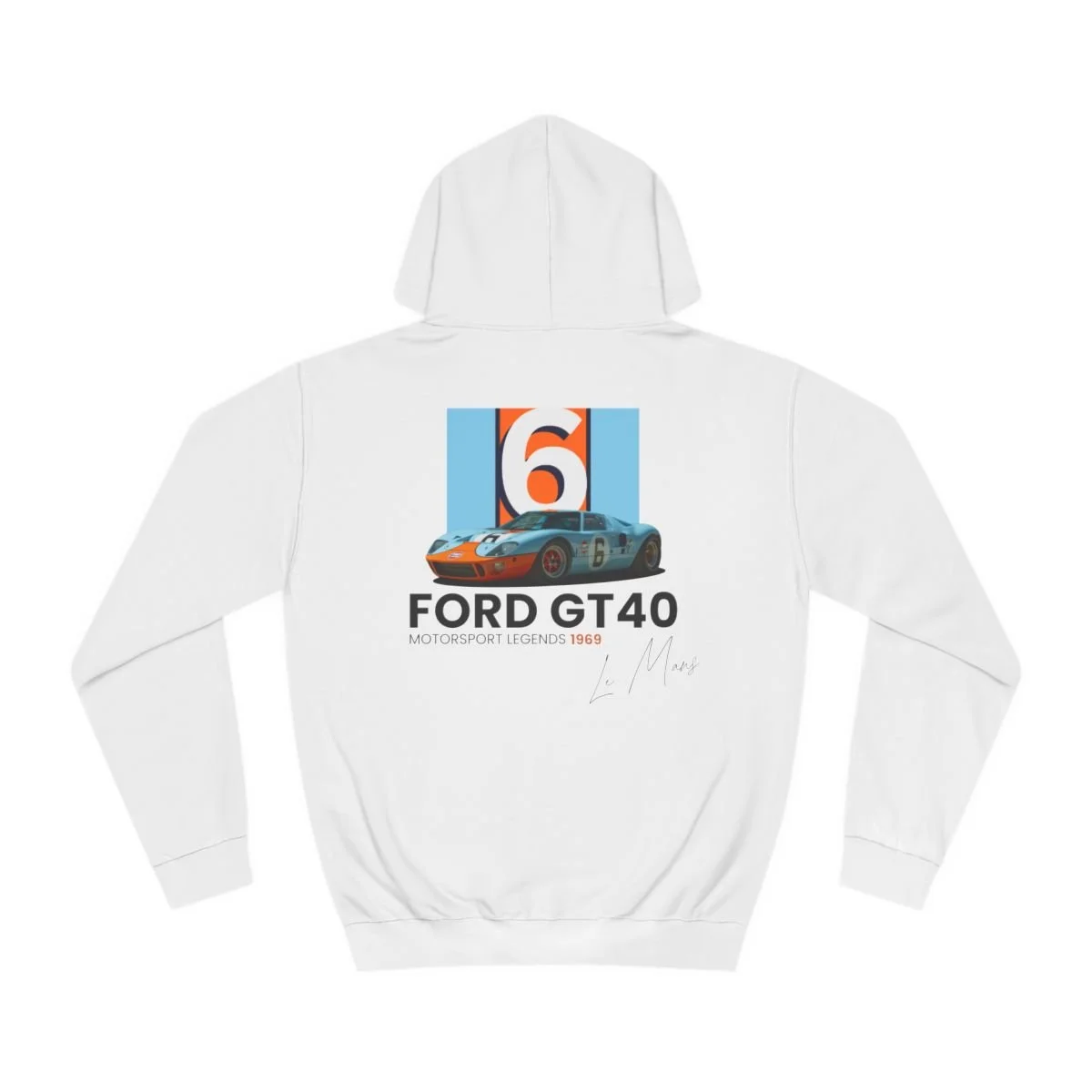 The Ford GT40 is a legendary race car that made history by winning the 24 Hours of Le Mans four consecutive times from 1966 to 1969, breaking Ferrari’s dominance and solidifying Ford's place in motorsport history. Known for its powerful V8 engine and sleek design, the GT40 remains an icon of endurance racing and American engineering. Our GT40 hoodie honors this iconic car, offering fans a stylish way to celebrate one of the most storied machines in racing history.
